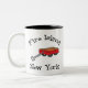 Fire Island Mug com foto de um pequeno vagão vermelho. Souvenirs e t-shirts divertidas da Ilha Fire.