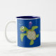 Caneca De Café Em Dois Tons Ilustração animada feliz da tartaruga verde-branca