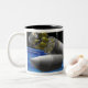 Caneca De Café Em Dois Tons Imagem artística de um foguete de descolagem verti