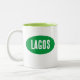 Uma linda caneca verde e branca que diz Lagos nela. Lagos é a maior cidade da Nigéria. Esta caneca é inspirada pelas cores da bandeira nigeriana.