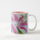 A caneca de café cor-de-rosa & branca de Lillies do Stargazer em um rosa alinhou a caneca