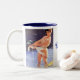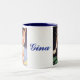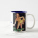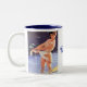 duas, garotas vintage finas (em lagoa) com borda amarela fina e texto personalizável de cor dupla. Personalize esta caneca com o seu nome ou o nome da sua namorada!