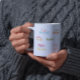 Declarações positivas com nome personalizado em caneca, ideais para manifestação e vida positiva, padrão feminino colorido