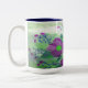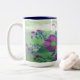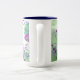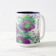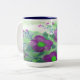 Personalize o feliz texto de aniversário para qualquer ocasião ou celebração, ou para você mesmo para uso diário nesta grande caneca de café com flor roxa, acentuada com dentro, cor e marinho azul.