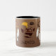 Roda nativa e rodas de remédio numa caneca. As cores incluem vermelho, amarelo, preto, branco, ouro e marrom. Linda LaBow Wagner trabalha com direitos autorais.