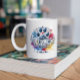 Esta caneca de café com tema de pai apresenta aquarelas de pata de cão com o melhor pai de cão de sempre, perfeito para beber sua bebida favorita ao fazer malabarismo com seu bebê de pele.