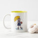 Caneca De Café Em Dois Tons Menina Com Guarda-Chuva Amarelo Em Aquarela