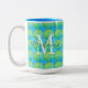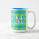 Bolinhas Verde Azul Monograma De Café De Dois Tons. Nunca confunda sua caneca de café no escritório novamente com este padrão divertido e moda. Ninguém vai querer tomar uma xícara com o seu nome no trabalho mantendo a sua caneca segura e disponível.
