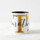Caneca De Café Em Dois Tons Monograma do ouro "T" com nome personalizado