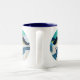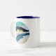 Uma paisagem digital com cores brilhantes e texturas mostrando um cogumelo com uma equipe de trenó de cão e um sol cor-de-rosa brilhante em tons de azul, ouro, ciano e amarelo.