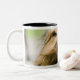 Caneca De Café Em Dois Tons mostrando a língua, cabelo longo, retrato