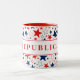 Esta caneca de café cerâmica é mostrada com estrelas impressão patrióticas e texto republicano. Personalize este item ou comprar como está.
