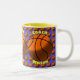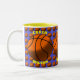 Três Ponteiro! Bolas de cesto constituem esta caneca divertida. Personalizável para que você possa adicionar seu próprio texto e alterar a cor de fundo. Faz um presente excelente!