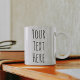 Personalize com seu próprio texto. As palavras são impressas em ambos os lados da caneca.