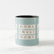 Um na moda e uma caneca moderna do Home Sweet Home em adoráveis na moda de cor azul pálida/verde, preto e creme. Esta caneca é ideal para ser usada em casa para você ou como um presente para o lar.