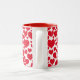 A caneca de café cerâmica é mostrada com um impressão de coração festivo Namorados. Cor Vermelho Interior Personalize este item ou comprar como está.