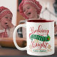 Esta festiva caneca de café de duas tonalidades mostra a frase "Banho Espirita Brilhante" em cores vermelha, verde e dourada do Natal. A design inclui um chapéu de santa, sagrado com bagas, biscoitos de natal e sotaques de estelar. Personalize adicionando seu nome ou dentro de texto especial do quadro do pino rolante. Perfeito para todas as suas ocasiões de assar no Natal. Peça hoje para você ou para dar ao seu padeiro de Natal favorito.