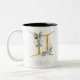 Caneca De Café Em Dois Tons Nome Gemini Floral Azul e Dourado