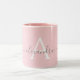 Caneca De Café Em Dois Tons Nome Inicial Monograma Branco Rosa Script Elegante
