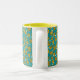 Caneca De Café Em Dois Tons Padrão de Flores de Teal Amarelo
