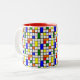 Esta caneca tem uma design moderna do século médio de uma grade com quadrados e retângulos coloridos. Também tem círculos coloridos colocados nas linhas de grade. Se você gosta do design, mas prefere cores diferentes, me mande mensagem.