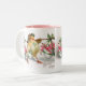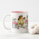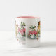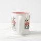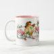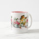 Pintinho de bebê giro vestindo um chapéu e cascas de ovo de carregando cheio de flores rosa. Doce design.