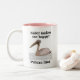 Pelican Bird, design de Nisha Prabhu. Comece seu dia com um pedaço de charme costeiro! Esta caneca de café de duas tonalidades apresenta uma bela ilustração de um pássaro pelicano majestoso, trazendo a sensação serena do oceano diretamente para a sua cozinha. Perfeito para café, chá, ou qualquer bebida quente, esta caneca é um presente delicioso para amantes de pássaros, entusiastas da natureza, ou qualquer pessoa que sonhe com a praia.