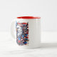 Esta caneca de café cerâmica é mostrada com um impressão de Bandeira Eagle patriótico dos EUA. Personalize este item ou comprar como está. Imagem licenciada