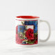 Uma caneca de dois tons com flores brancas e azuis vermelhas faz uma bebida de celebração de excelente, ou um presente especial.