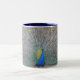 Pavão: Um pavão orgulhoso, azul com uma exposição completa do fantail nesta caneca da qualidade neste design coleccionável por Stronsy.