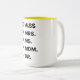 Graduação de doutorado feminino Mug de dois tons Adicione um pop de cor ao seu café da manhã! O exterior da caneca apresenta uma base branca brilhante, enquanto o dentro é vívido em cores ricas. Dê este presente divertido a um formando de doutorado disponível em 11 ou 15 onças. Dimensões: 11 onças: 3,2" D x 3,8" H 15 onças: 3,4" D x 4,5" H Micro-ondas e máquinas de lavar loiça seguros. Forte construção cerâmica. Atende aos requisitos de FDA para segurança de comida e bebidas. Impresso a pedido em Reno, NV.