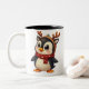 Um desenho animado e bonito, brincalhão de bebê pesto pinguin vestindo fantasia de rena, kawaii. Grandes olhos de anime. O fundo é branco sólido