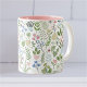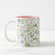 Caneca De Café Em Dois Tons Plantas Azuis Rosa Flores Verde