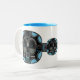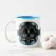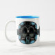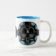 O que você obtém quando pega uma tradicional Máscara Tribal Africana e pinta-a com cores que foram populares no final da década de 1950 no início da década de 60? Este design "Pop africano" divertido, como foi reimaginado pelo artista digital Leslie Sigal Javorek. Preto, azul médio, aqua, mauve, cinza rosada e cinza de azeitona. Sua escolha de estilo e tamanho da caneca.