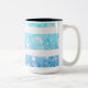 Lindas e cintilantes listras azuis de neve fazem desta caneca de café um presente de excelente feriado.