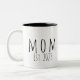 Caneca de nova mãe estabelecida - Tipografia minimalista elegante preta Mamãe - Adicione o ano "Est" estabelecido personalizado quando seu primeiro filho nasceu. Adicione anos adicionais para cada filho.