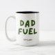 Mug personalizado "Combustível a Pai" moderno com Gráfico Verde Escuro e nome do Pai em Preto. Isso daria um presente de excelente para Dia de os pais, aniversário ou feriados, ou como um presente de Chá de fraldas para Pai.