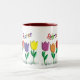 Caneca De Café Em Dois Tons Presentes aposentados do design das tulipas do