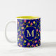 Pretty personalized mug with feminine floral pattern on a dark blue background.