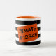 A prisão e a prisão temida caneca com listras brancas e pretas têm um tag de identificação para personalizar com um nome de preso ou número de membro da equipe. Para funcionários que se sentem como se fossem uma prisão. Presente engraçado para colegas de trabalho ou talvez até para familiares.