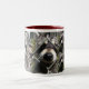 O racoon selvagem com seu nariz travou na cerca. Olha como chanfra figura para fora como sair.