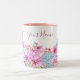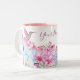 Caneca De Café Em Dois Tons Ramal floral azul rosa com pássaro