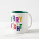 Caneca De Café Em Dois Tons Reindeer feliz e pinheiro brilhante Snowman