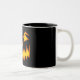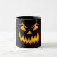 Uma caneca de café cerâmica mostrada com um rosto assustador de halloween. O interior da caneca é preto. Personalize este item ou comprar como está.