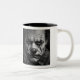 Uma pintura digital em tons de cinza de um palhaço triste. Mug de dois tons, 11 oz