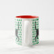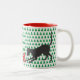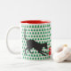 Silhueta preta Saluki e pacote vermelho com árvores verdes em branco.