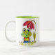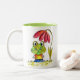 Caneca De Café Em Dois Tons Sapo verde branco sob uma flor vermelha