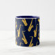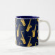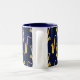 Os saxofonistas vão adorar esta caneca legal que apresenta um padrão de saxofonias, num fundo azul profundo.