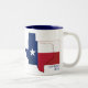 O Patriótico TEXAN FLAG MUG mostrando o design combinado da bandeira e o contorno do mapa do ESTADO DO TEXAS na frente. Por baixo da imagem, o texto lê DEUS ABENÇOE TEXAS. No verso está o verso das Escrituras do Salmo 33:12. O texto e o verso das escrituras são PERSONALIZÁVEIS para que você possa PERSONALIZAR esta caneca para fazer um presente de excelente para o Natal, Aniversários, Dia de os pais, Dia de as mães, para qualquer ocasião e ao longo do ano. Você pode até fazer dele um presente surpresa para um pastor especial no Dia de Apreciação do Pastor. Parte da Coleção TEXAS por Designs da Berean.