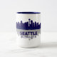 Esta caneca de café cerâmica é mostrada num impressão de linha do horizonte de Seattle. Cor Marinho Azul Escolha outro estilo de caneca ou comprar como está. Imagem licenciada